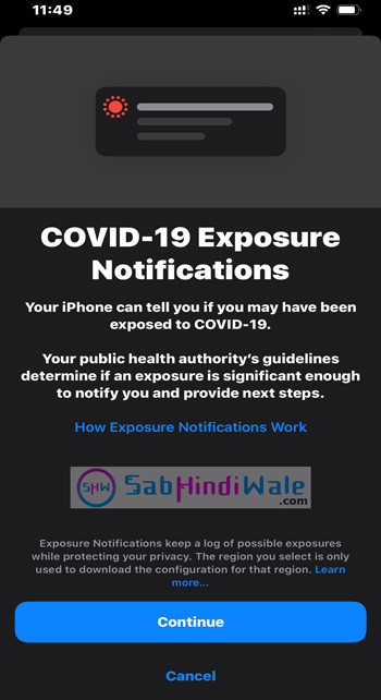 Apple और Google वैश्विक महामारी COVID-19 से लोगों को बचाने में मदद करने के लिए एक साथ मिलकर सहयोग कर रहे हैं। यदि आप Exposure Notifications को चालू करते हैं, तो एक सार्वजनिक स्वास्थ्य प्राधिकरण(Public Health Authority ) आपको COVID-19 के संभावित जोखिम(possible exposure) के बारे में सूचित कर सकता है। यह सुविधा किसी के साथ एक्सपोज़र नोटिफिकेशन डेटा को इकट्ठा या साझा नहीं करती है जब तक कि आप इसे अनुमति नहीं देते हैं।