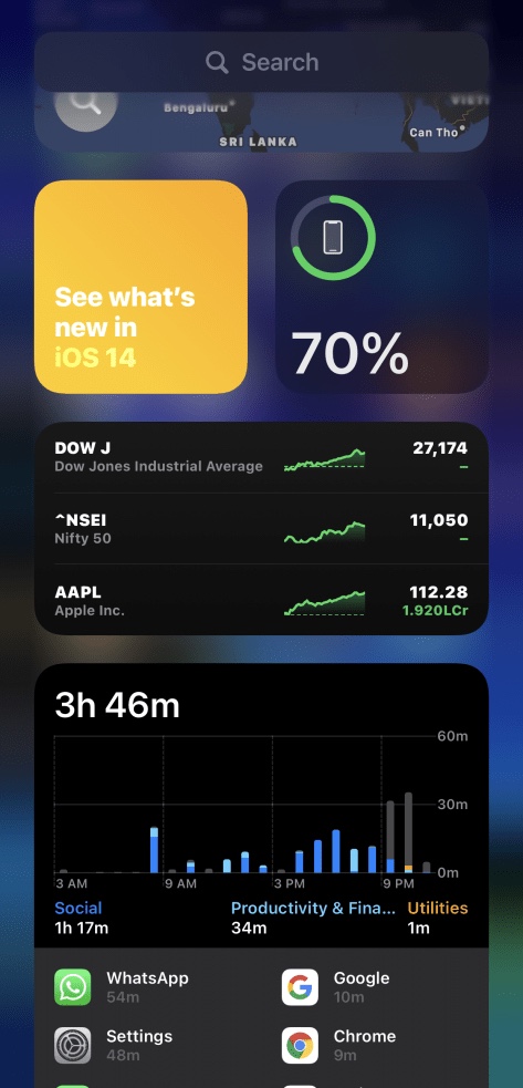 IOS 14 में अब आप स्क्रीन में नए स्क्रीन जोड़ सकते हैं , और अपने स्क्रीन पर वेजर्ट भी ऐड कर सकते हैं , जैसे की घड़ी , वेदर , लोकेशन मैप आदि…